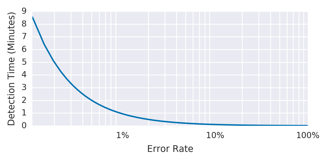 | Detection Time | 悪い | 100% 停止も 0.2% 停止も同じ 1 時間待つ必要がある |