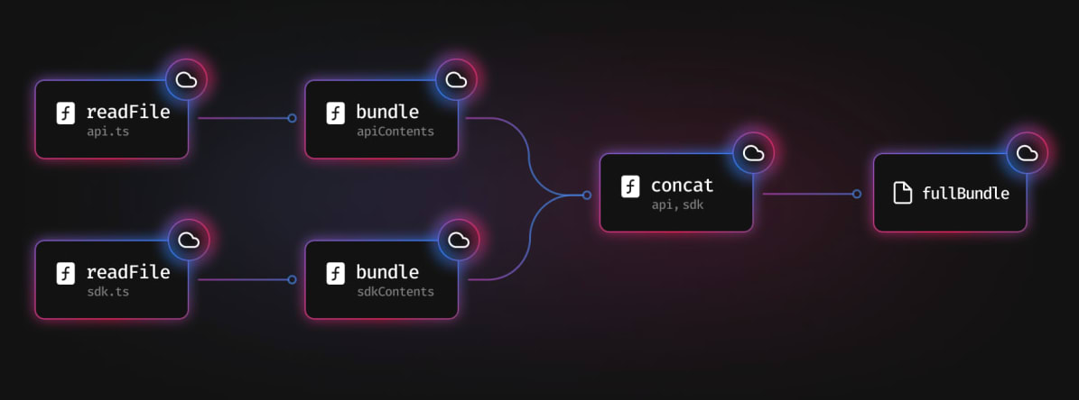 api.ts と sdk.ts をバンドルする場合、バンドラは api.ts と sdk.ts それぞれにおいてバンドルし、連結して一つのファイル(fullBundle)を構築します。 この時 Turbopack では、呼び出されたすべての関数の結果をキャッシュに保存します。