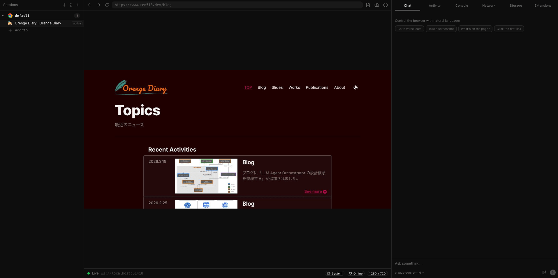 以下は、実際に chat コマンドで本サイト(ren510.dev)のブログページに遷移した例です。