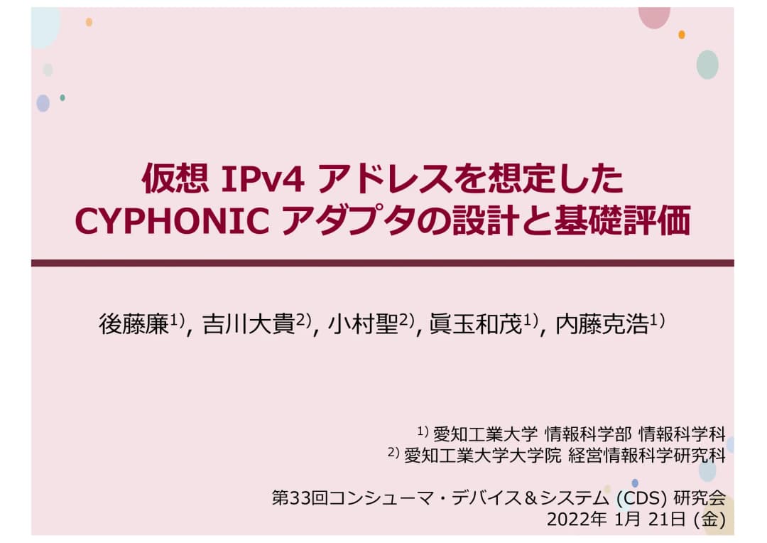 仮想 IPv4 アドレスを想定した CYPHONIC アダプタの設計と基礎評価